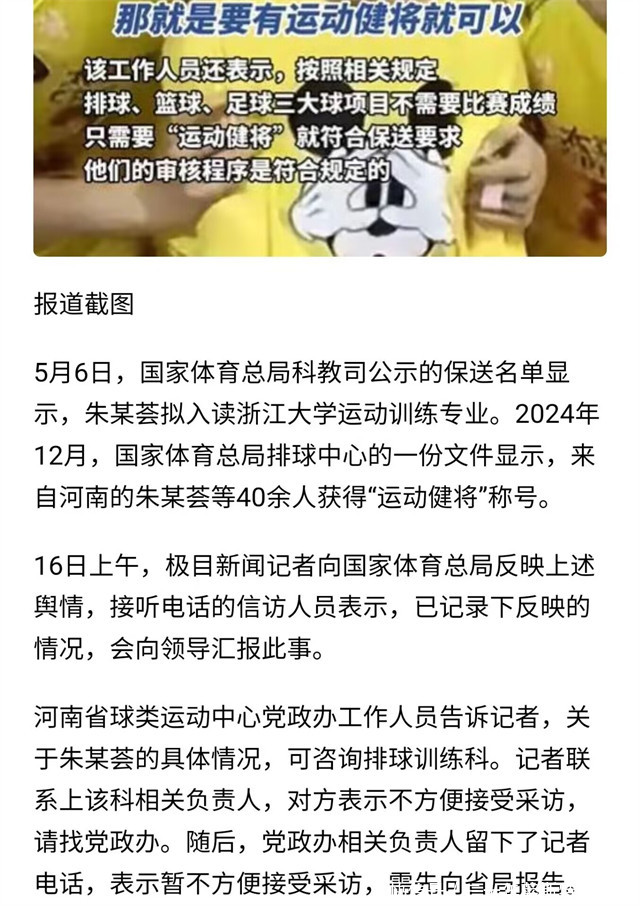 浙大本年原本运筹帷幄招3名女排勾通员,最终只招了2东谈主,其中就有朱佳荟。而证据要求,唯有相宜“勾通健将”条目就可以保送,因此审核才调相宜端正。跟着网上质疑声增大,浙大如故将情况反应至体育管制部门,不知谈接下来是否还会有回复呢?被质疑没问题,唯有给出圆满请问就行,疑窦摒除更能诠释皑皑,若是有问题那就尽快责罚,免得影响朱婷姐妹的活命和使命。