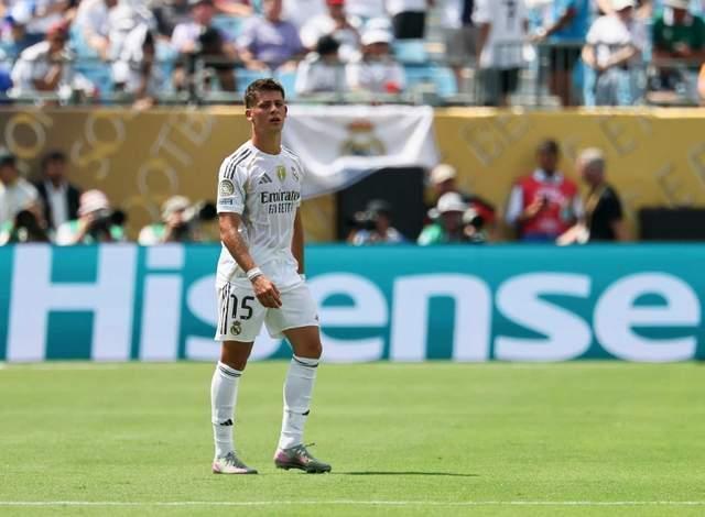 10打11的绝境,皇马球迷有点懵。对阿隆索来说,这更是严峻的稽查。来到皇马不到1个月,集训时候不到两周,阿隆索该奈何应付?借着补水时候(30分钟驾御),龙哥进行大刀阔斧的变阵调度: